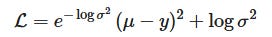 plt.show()Next we'll train a probabilistic neural network to learn the above function, despite the added noise. This two-headed network predicts a mean (μμ), our target value, and log-variance (logσ2logσ2), our uncertainty. These terms are jointly minimized as a negative log-likelihood-style loss:
